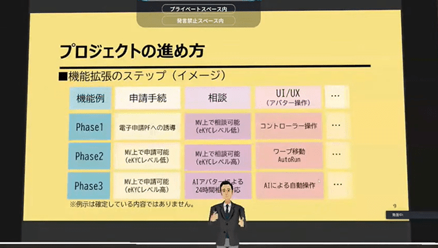 発足式で斉藤猛区長は、同プロジェクトについて「オンライン申請でも来場不要という目的は達成できる。しかし、メタバースのデジタル空間の中で、職員と区民がリアルタイムでコミュニケーションできれば、寄り添い型の手続きを提供することが可能となる。メタバースでは氏名を明かさなくても良いため、これまでにない用途での利用も可能となる。アバターを介したコミュニティづくりや仮想空間での会議など、メタバースの特長を生かした取り組みを進めていきたい」とコメント。