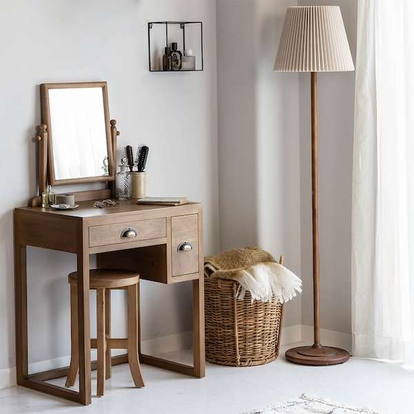 レトロな小さめドレッサー。サイドには深めの引出しが付いている。2サイズ。