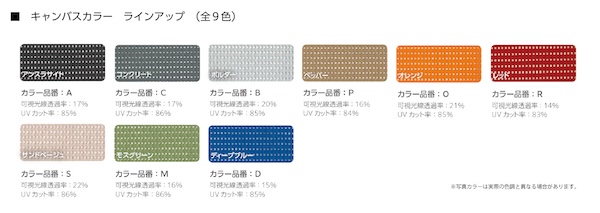 シェードにはメッシュ生地のキャンバスを採用し、適度な光を取り込みながら紫外線を83~86%カットする。