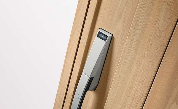 認証部をハンドル一体型とすることでノイズレスなデザインを実現。扉デザインになじみ、住宅とも調和する。