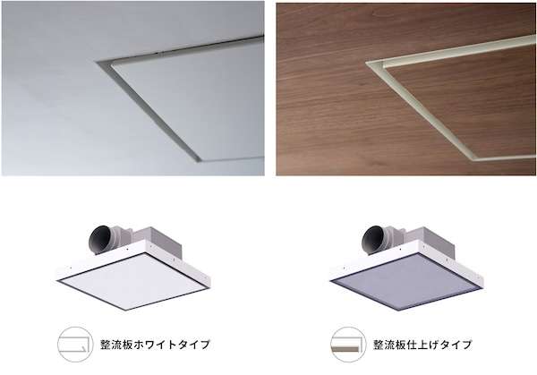 カバーは白い天井に合う「整流板ホワイトタイプ」と、天井面に応じて仕上げを変えられる「整流板仕上げタイプ」の2種類。