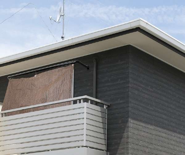 室内・室外どちらでも使えインテリアに馴染むΦ34の太パイプ。12kgの荷重に対応し、物干し・物掛けのほか、シェードをつけて日射・暑さ対策に使うことができる。