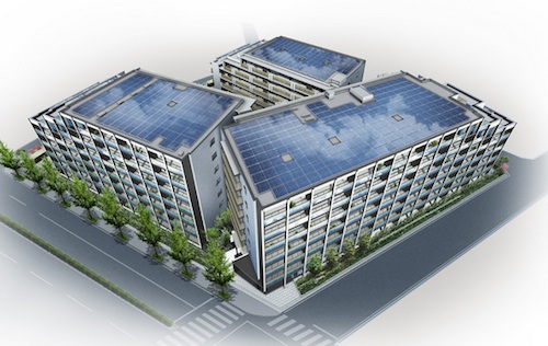 タカラレーベン(東京都新宿区)では、太陽光発電+オール電化マンション「新川崎“ソラパワ”PROJECT(レーベン新川崎デュアリズム)」(神奈川県川崎市、地上7階建て2棟、6階建て1棟、総戸数122戸)を建築中だ。屋根に470枚の太陽光パネルを設置、固定価格買取制度を使って売電し、年間の光熱費を約45%削減できるとする。