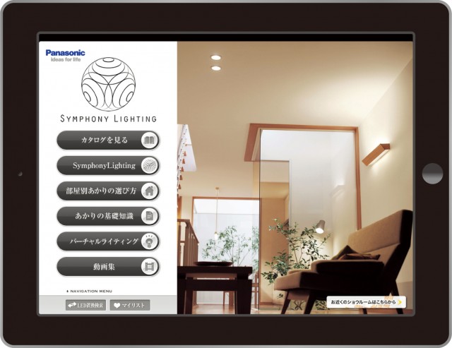 パナソニック(大阪府門真市)エコソリューションズ社が、あかりの魅力や情報を紹介するiPad専用の住宅用照明アプリ(無料)を公開する。