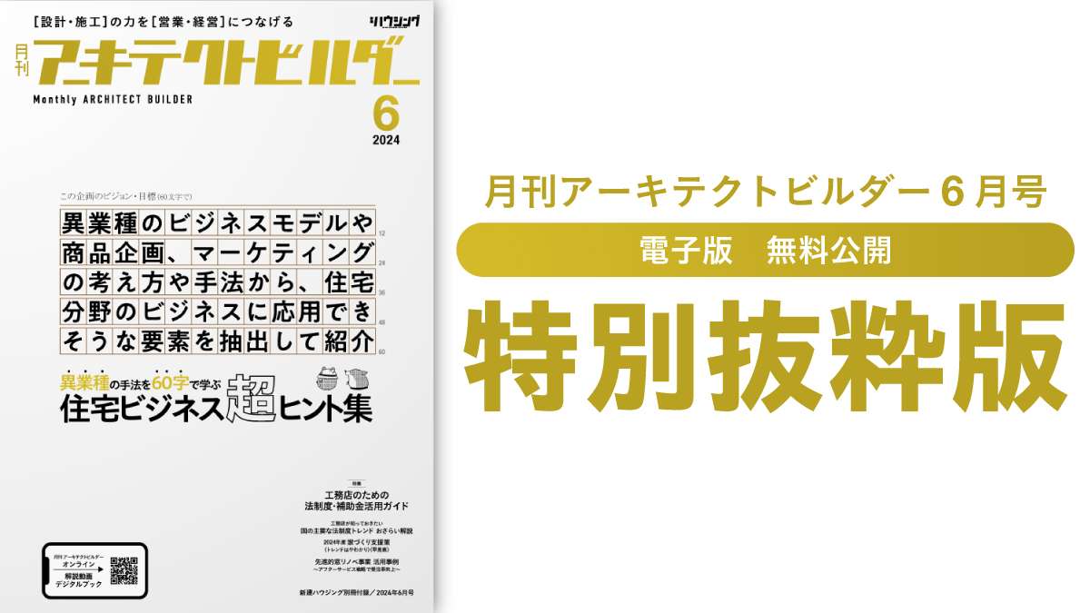 「異業種の手法を60字で学ぶ 住宅ビジネス[超]ヒント集」の続きは、新建ハウジング別冊「月刊アーキテクトビルダー6月号」(2024年5月30日発行)でご覧ください。