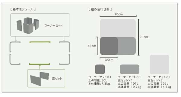 新製品は、直パーツとコーナーパーツを組み立てて設置。レンガや石のように大掛かりではないため手軽に始められ、スチール製のため木質囲いのような腐朽・劣化の不安が少ない。メッキ加工と耐食性の高い屋外用塗料により錆びにくくしている。