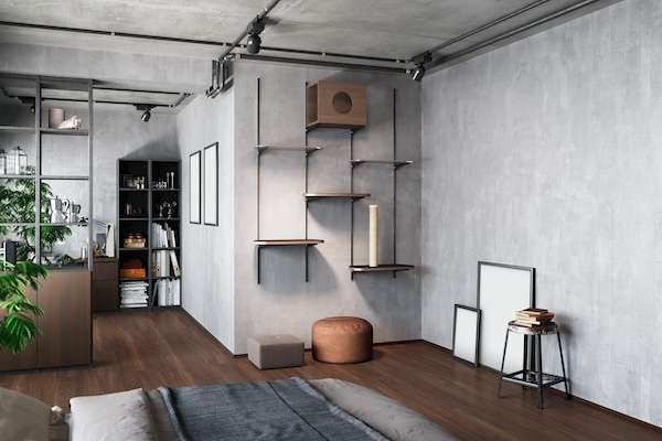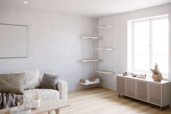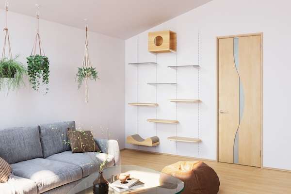 永大産業(大阪市)は、可変型収納棚「フリーハンギングシェルフ」に、キャットステップとして使用できる木製棚板やアクリル棚板、爪とぎボックス、穴あきボックスなど、猫が心地よく過ごせるペット対応アイテムを追加して5月20日に発売した。