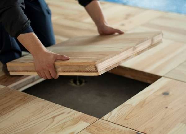 表面に金物が見えない仕様になっており、カーペットを貼らずに容易に施工できる。