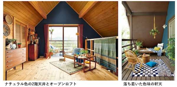 オープンキッチンとオープンロフト、木のぬくもりを感じる天井・軒天が特徴で、キッチンタイルやパントリーは好きな色の組み合わせを選ぶことができる。
