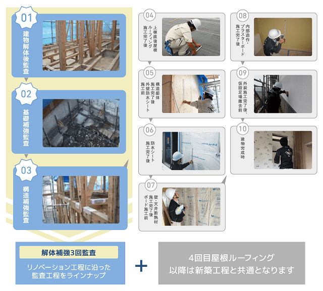 同サービスは、木造住宅のリノベーション工事において、施工管理工程の10項目の重要なタイミングで、第三者視点から観察・評価するというもの。スコアリングと評価分析を実施し、施工品質の改善・向上と、ナレッジ化による情報共有や知識・ノウハウの標準化を図る。人材育成に役立つだけでなく、施主に対しても施工品質の信頼性と安心感を高めることができるという。オプションで「リノベーション工事標準施工手引書」の作成も可能。施工のバラツキが多い重要な箇所をわかりやすく図解することで、各業者にポイントが伝わりやすくなっている。