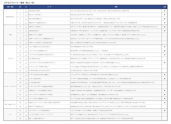 ビーイナフ(大阪市)は、工務店・ハウスメーカーから提案された間取り図や施主が作成した間取り図を、施主自身がチェックできる無料ツール「せやまどりルール一覧表」のリニューアル版をリリースした。