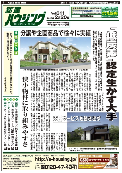 昨年12月4日の制度開始時にはほとんどのつくり手が静観していた「低炭素住宅」に、具体的な動きが出てきています。分譲住宅でまとめて認定を取得する、認定基準を満たす企画商品を販売するといった動きがそれで、申請に必要な計算を代行するサービスなども始まりました。新建ハウジング2月20日号1面は「低炭素住宅」に関する動きを紹介しています。