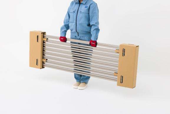 2024年問題に対応するため、パネルを4分割にして2枚セットで梱包することで運搬性を向上。1梱包あたりの重量を従来品より約68%削減し、8.4kgとした。