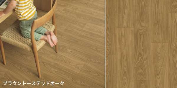 「ライトグレイオーク」は日本の床市場でトレンドとなっているベージュ・グレージュ・ホワイト系の色味、「ブラウントーステッドオーク」は温かみのある色調により和モダンやジャパンディスタイルのインテリアと調和するという。