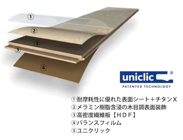 「ペルゴラミネートフロア」は、ベルギー・ユニリン社製の床材。メラミン樹脂を含浸させて木質感を表現したデザイン性と、特許取得の表面保護技術による優れた耐摩耗性、耐衝撃性、耐久性が特徴となっている。