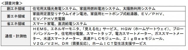 領域別にみると、EV/PHVを含む築エネが11年比6.9倍の1兆1212億円、スマートメーターなどの通信・計測が11年比4.8倍の4998億円と大幅に伸びると分析。さらに細かい品目に着目すると、家庭用燃料電池、家庭用定置型リチウムイオン電池、電力供給側と需要側を仲介するデマンドレスポンスのアグリゲーションサービス、電力を見える化サービスなどの大幅成長を予測した。