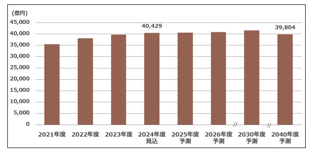 水廻り関連機器では、エコキュートがカーボンニュートラル社会の実現に向けた政策などで、今後も堅調に推移すると予想。食器洗浄乾燥機も共働き世帯の時短ニーズなどにより緩やかに伸びるとみられる。システムキッチンとセットで導入されるビルトインコンロや食器洗浄乾燥機、浄水器、レンジフードは、新築着工戸数に影響を受けやすいものの、既築向けの交換や高級品の需要が高まっていることから市場拡大が予想され、2040年度は2023年度比8.0%増の7950億円と予測する。