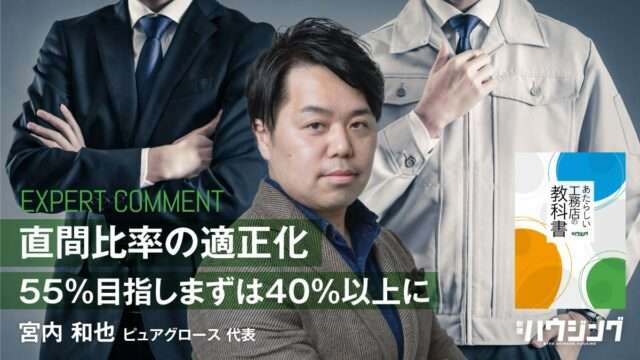 足下の経営で重視すべきKPIが2つある。1つは営業スタッフがいる年間新築20棟以上の工務店なら常に考えるべき「直間比率」だ。