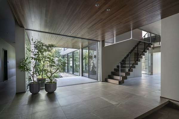 大空間でも見劣りしないダイナミックさと存在感を備えたフロートデザインの鉄骨階段。
