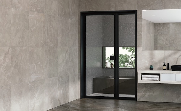 水まわりに使用しても腐らず、施工性に優れた樹脂枠と立体感のあるシートを融合し、上質感のある黒を表現。