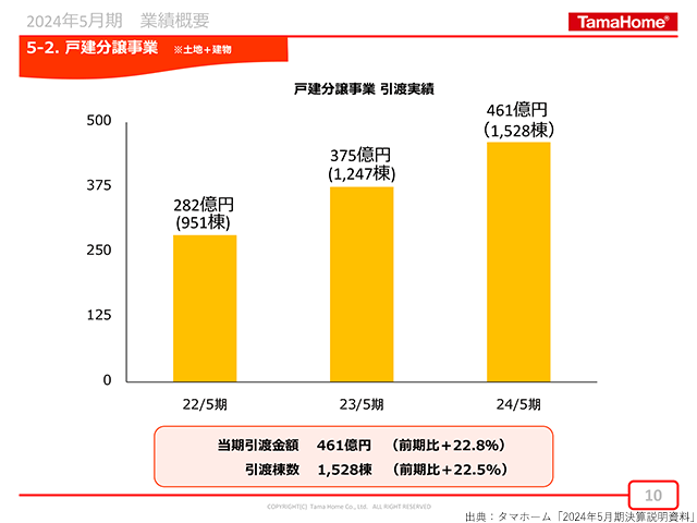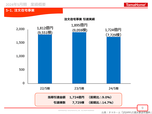 戸建て分譲事業引渡実績(決算説明資料より引用)