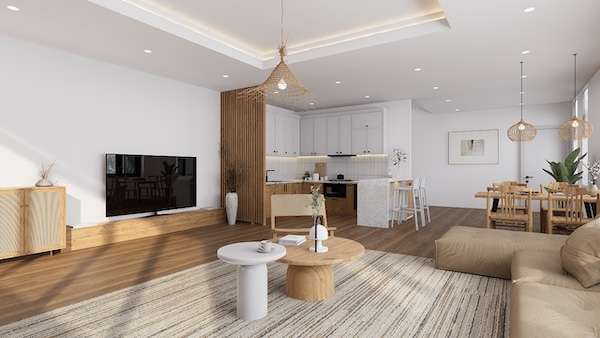 住宅の場合、外観、内観、キッチン、リビング、寝室、バスルーム、トイレなどのシーン作成に対応する。