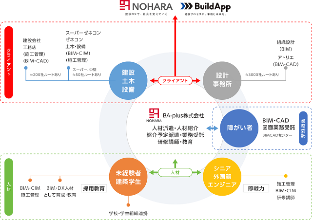 野原グループ(東京都新宿区)はこのほど、同社が設立したBA-plus(ビーエープラス、同)が、建設・BIM人材に特化した派遣・紹介事業を本格的に開始したと発表した。