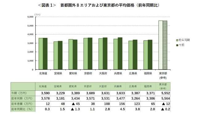 4~6月期の首都圏外8エリア(北海道、宮城県、愛知県、京都府、大阪府、兵庫県、広島県、福岡県)についても公表した。