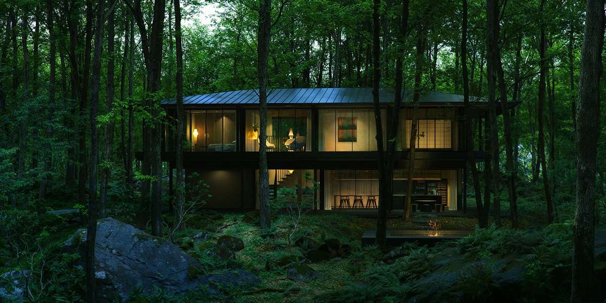 NOT A HOTEL、自然と調和するガラス張りの別荘を開業