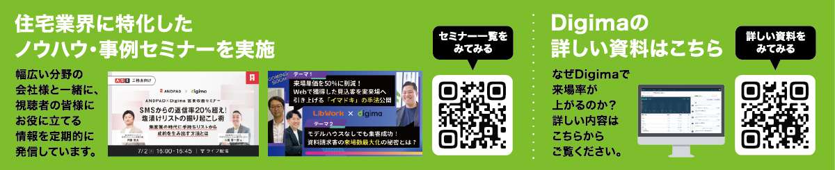 Digimaの強みは、見込み客の問い合わせから成約に至るまでのDXにある。いま、一般のユーザーは、工務店や住宅会社に相談に行く前にウェブを通して、様々な情報を入手して、検討を重ねている。資料請求や問い合わせの段階ですでに「予選」が始まっているのだ。