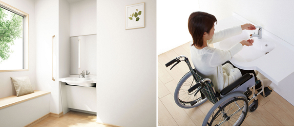 アサヒ衛陶(大阪府堺市)は、車椅子に座ったままで快適に使用できる車椅子対応洗面台を3月18日から発売する。