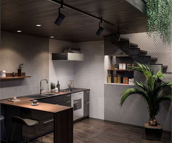 富士工業から生まれた板金スペシャリストチーム「Demold(ディモールド)」の高意匠金属パネルをレンジフードに採用。金属パネルは、モダンな「HATSURI(ハツリ)」と布地をイメージした「QUILTED(キルト)」の2タイプを用意した。