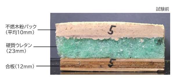 アサノ不燃(東京都江東区)は、硬質ウレタン断熱材の表面に「不燃木粉パック」を重ねることで、国土交通大臣不燃材料認定基準の性能を満たすことを確認。今後、正式な不燃認定の取得を予定している。