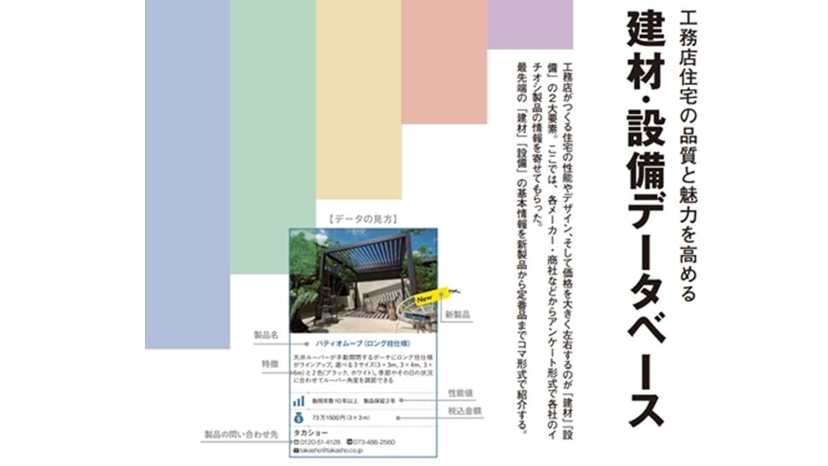 さて、新建ハウジングでは10月30日発行の月刊アーキテクトビルダー11月号で、「建材・設備データベース」として、今年も最新の建材・設備をメーカー各社のアンケート回答に基づいて一覧公開するコーナーを設けております。