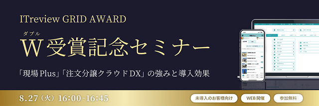 「ITreview」では、投稿されたレビューをもとにユーザーに支持された製品を発表しており、「現場Plus」は8期連続、「注文分譲クラウドDX」は3期連続で受賞している。