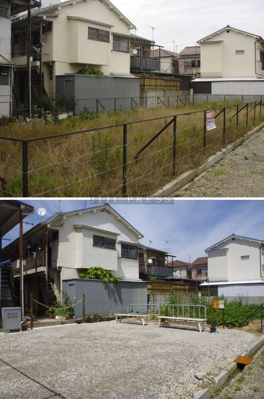 2012年度に整備された神戸市垂水区の「防災空地」。写真上が整備前、下が整備後(同市提供)