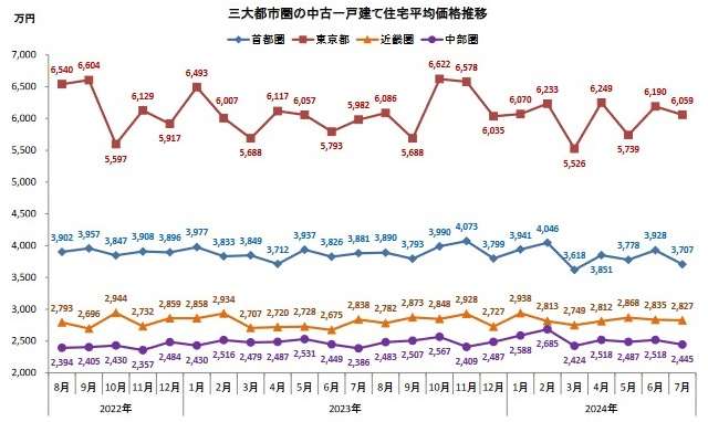 東京カンテイ(東京都品川区)は8月8日、7月の主要都市における中古木造一戸建ての供給動向を発表した。首都圏・中部圏は反転下落、近畿圏は連続下落した。
