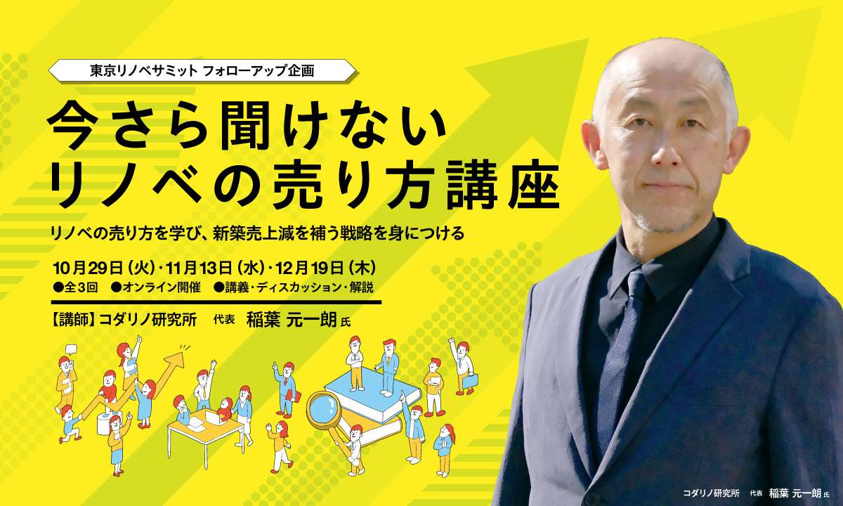特別講師のコダリノ研究所・稲葉元一朗氏には、工務店リノベ参入支援の経験をもとに、リノベを事業化するために必須となるポイントを詳しく解説していただきます。