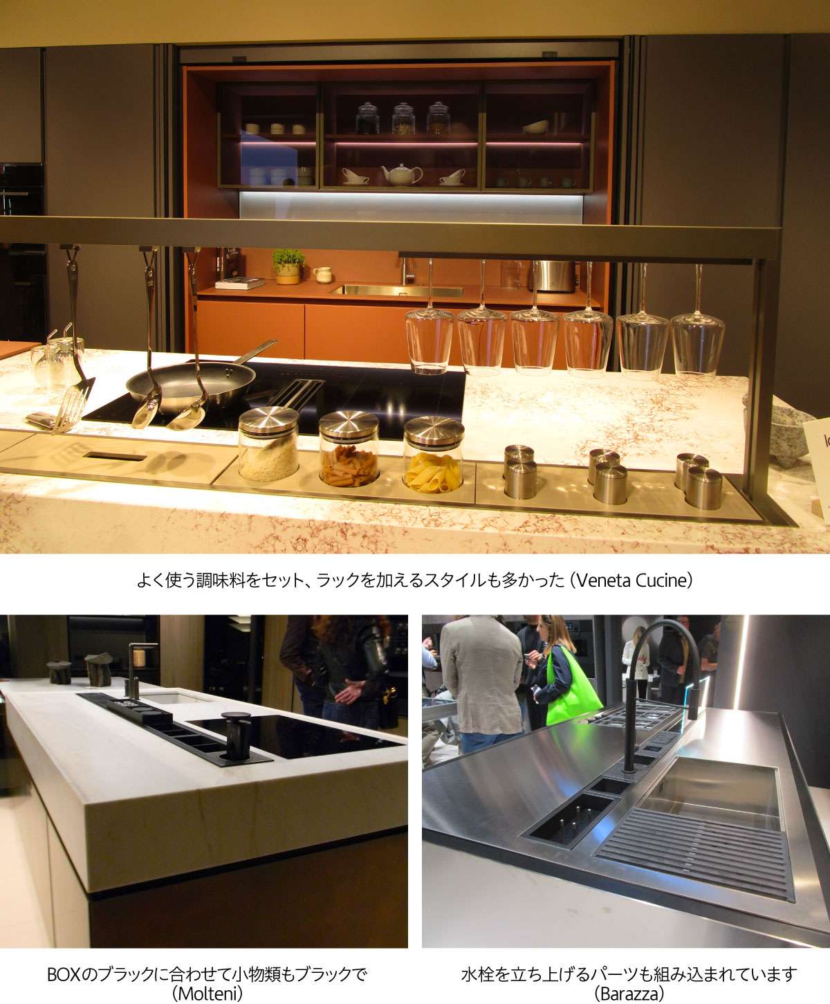 ここまでVol.2 では、ホール2&4と他ホール、すべてを合わせて100を超すメーカー各社のキッチンとキッチンアプライアンスの展示の中から、新たなデザイン・素材・パーツ・ビルトイン機器などをピックアップしてお伝えしました。
