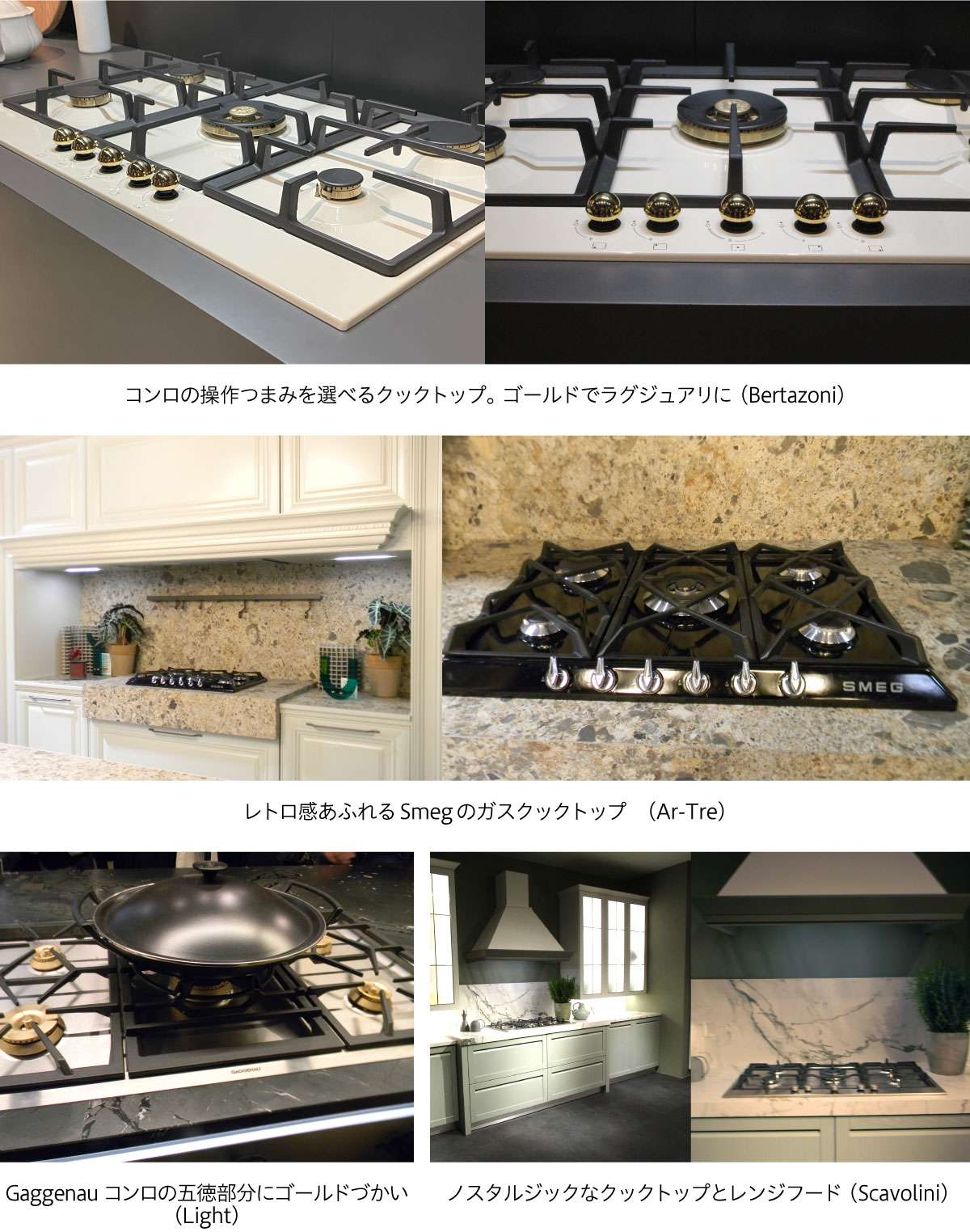 機能はそのままに装飾性を持たせたクックトップ。レトロキッチン向けデザインのガスクックトップもインテリアに合わせてビルトインされています。
