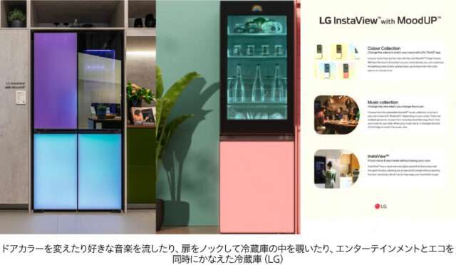 AIを活用したスマート家電の分野にあってこれからの新しい時代を目に見える形で見せた冷蔵庫の展示。温度管理(省エネ)、庫内の食品チェック(食品ロスの軽減)といった、どのメーカーも一様に対応している機能に加えエンターテインメント性まで搭載した冷蔵庫が登場。これからのキッチン空間の中で家電製品が果たす新たな一面を垣間見せ、来場者の目を惹きつけていました。