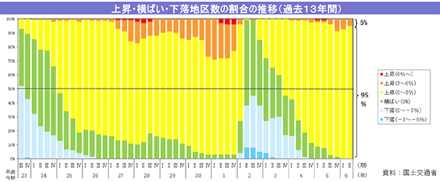 主な要因として、住宅地では利便性や住環境の優れた地区でマンション需要が堅調に推移したこと、商業地では再開発事業の進展や国内外からの観光客の増加により、店舗需要の回復傾向が続いたこと、オフィス需要が底堅く推移したことを挙げた。