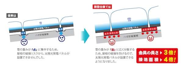 これにより太陽光発電パネルが設置できなかった多雪地域にも設置可能エリアが広がった。