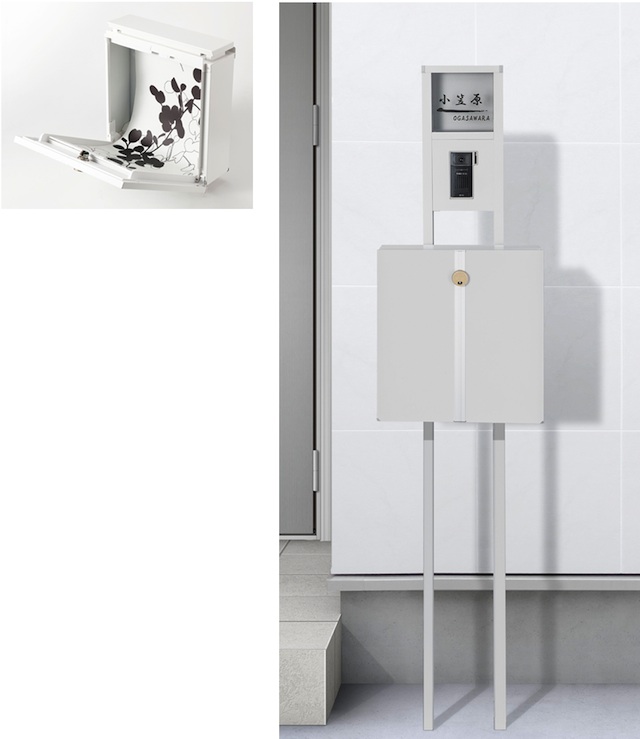 「エクスポストヴェール」は、郵便物を汚れに強いポリエステル生地のインナーシートで包む、新発想のポスト。ポストの内側に取り付けるインナーシートは植物モチーフの6デザインから選べ、郵便物を取り出すときだけ見える隠れたおしゃれにこだわった。税別5万5000円。