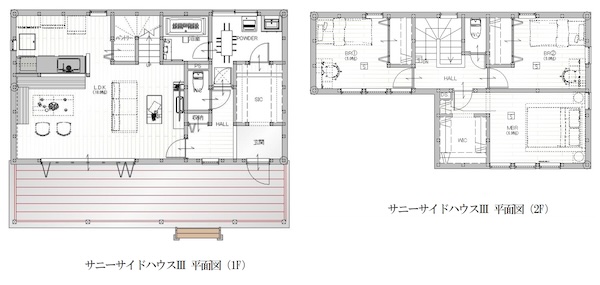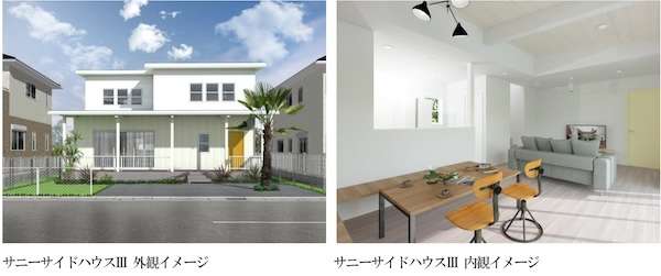 今回は、ミッドセンチュリーデザインを現代風にアレンジした「サニーサイドハウスⅢ」をラインアップした。南道路を対象にした床面積96.88平米、3LDK+カバードポーチの2階建てプランで、玄関からつながる大きなシューズインクローゼットとパウダールームが特徴となっている。