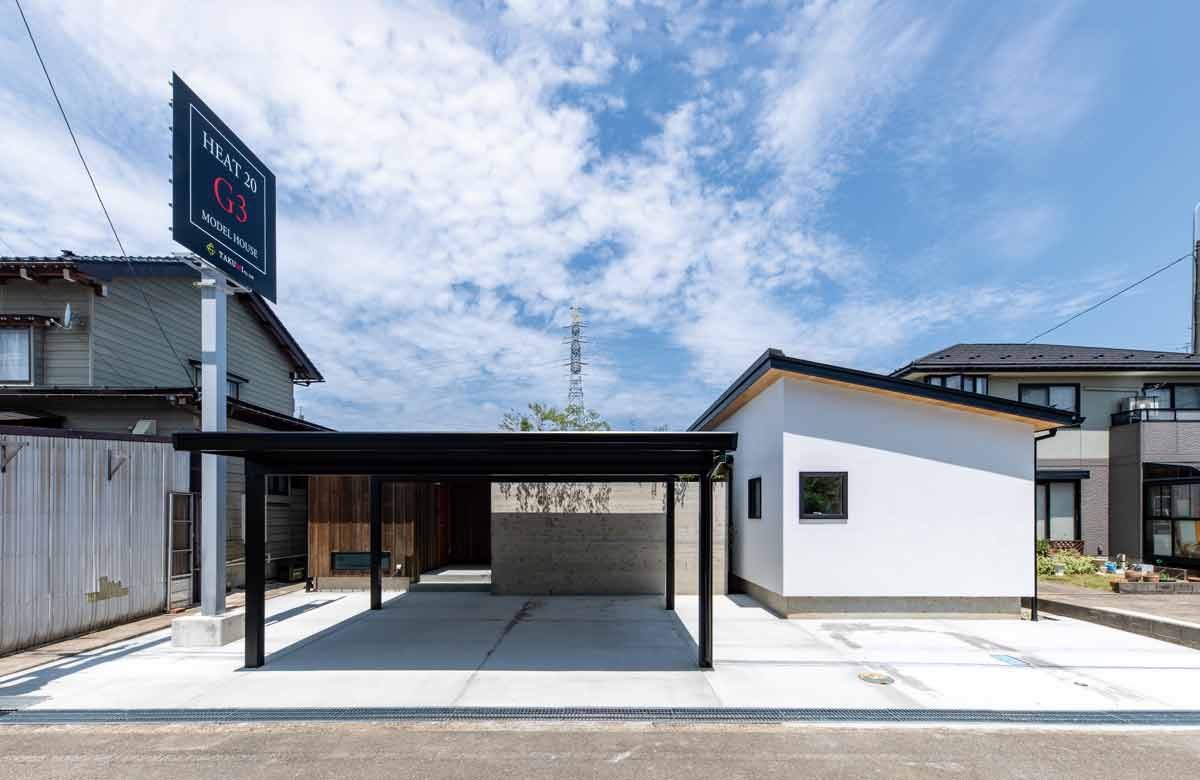| 手刻みで加工した天然乾燥材を用いて建てた上越市にあるモデルハウス。耐震等級3、断熱等級7の基準を上回るUA値0.17W/㎡Kの平屋で、気密性能はC値0.13㎠/㎡。住まい手(施主)の協力により、暮らしの様子も含めて見学できる | |