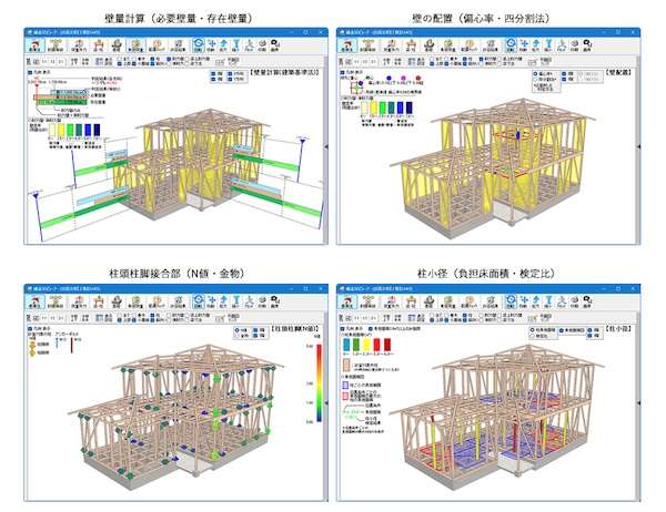 さらに、建築基準法適合判定の設計支援として、「建築基準法ナビ」(耐力壁自動配置)や「構造3Dビューア」(建築基準法モード)を追加する。