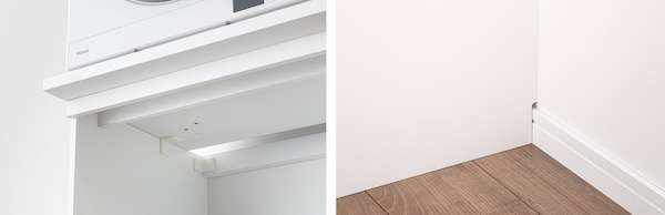 左:配線・蛇口用の切り欠き、右:巾木部分の切り欠き