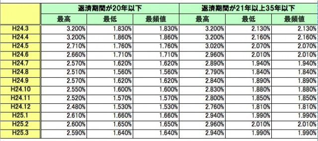 返済期間が21年以上35年以下のタイプの金利幅は1.99%(対前月比▲0.02%)~2.94%(同)と3カ月ぶりに下降した。一方、 返済期間が20年以下のタイプは1.64%(同▲0.01%)~2.59%(同)で2カ月連続の下降となった。