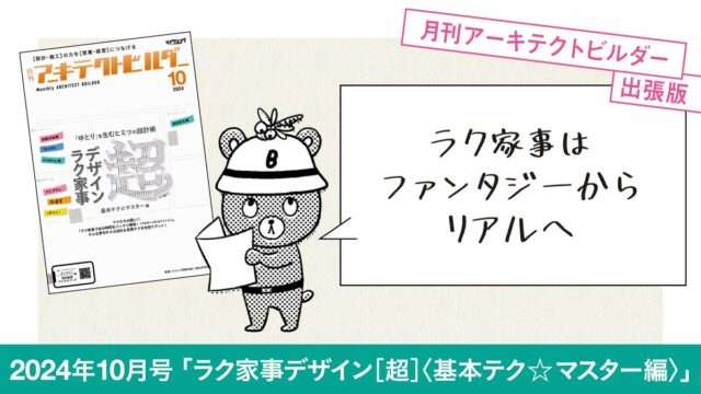 別冊「月刊アーキテクトビルダー」を、もっと多くの方に読んでいただきたい―そんな思いで9月から始まった本紙上での「出張版」。今月も取材・編集担当の大菅力さん、編集デスク・松本めぐみ2人が、10月号のテーマ・ラク家事デザインを語ります。現役子育て世代・松本のコメントにも注目!